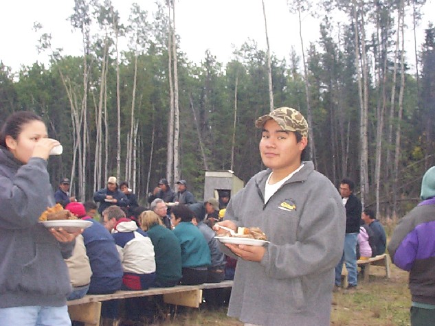 heres Jeremy and Tracy enjoying the food. He's going to have another plate when he's done with this one