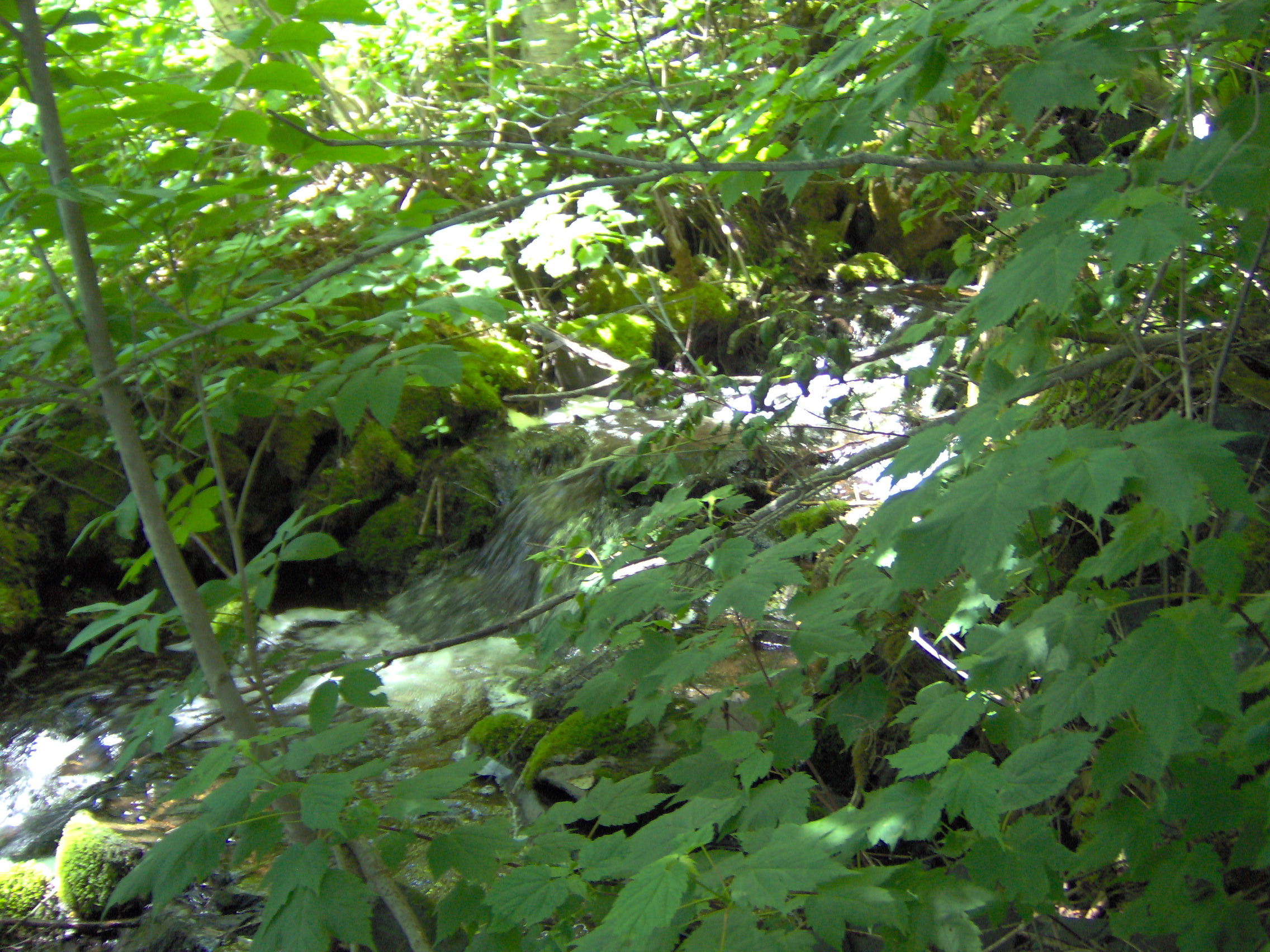 The stream coming down the hill just before it enters Abram Lake