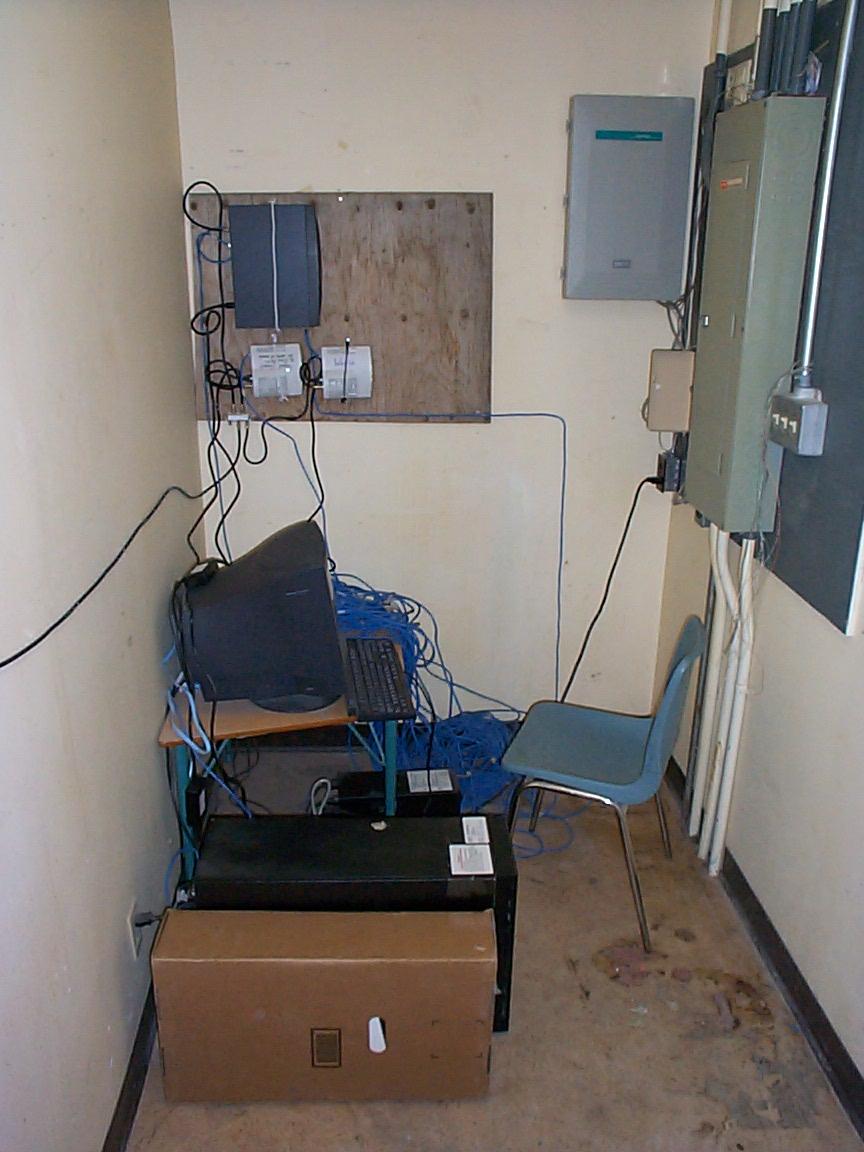 The maintenance room in the school. The IBM SchoolVista server in the foreground.