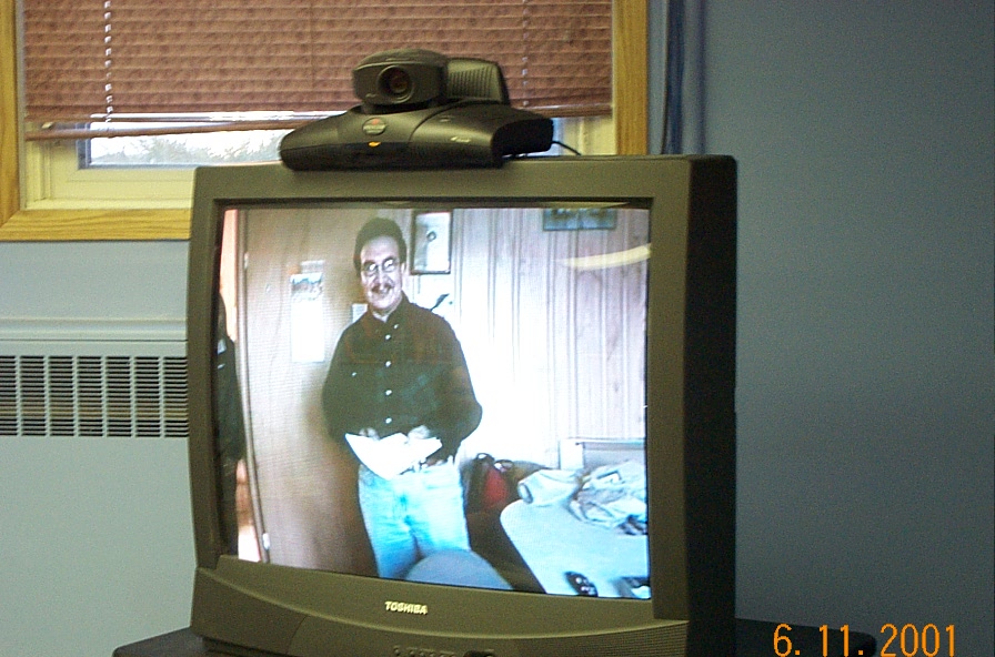 Archie Meekis (at the Deer Lake Band office) as seen from the KO Board room in Sioux Lookout