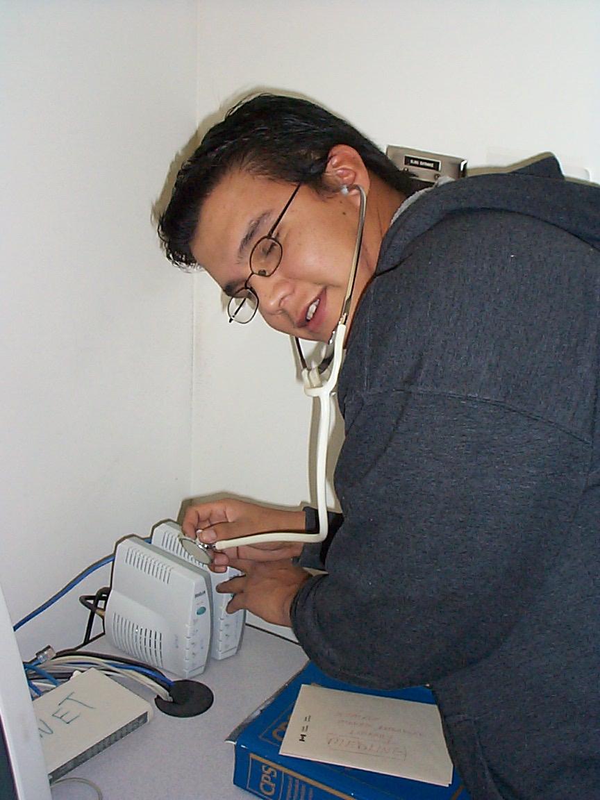 Cory Meekis troubleshooting the modem that wouldn't lock an upstream signal.