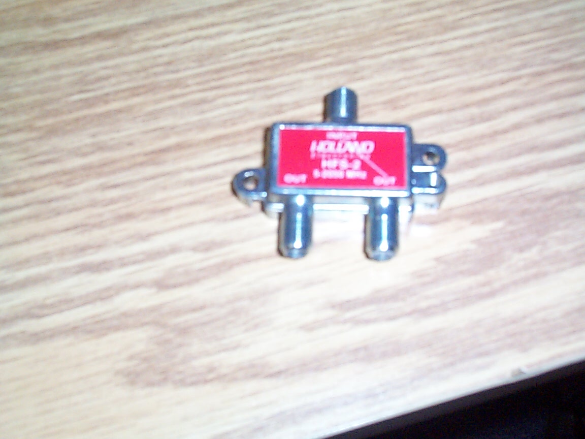 The 2-way splitter. [list] [*]The coaxial cable coming from the LNB at the dish connects to the single port on the top. [*]