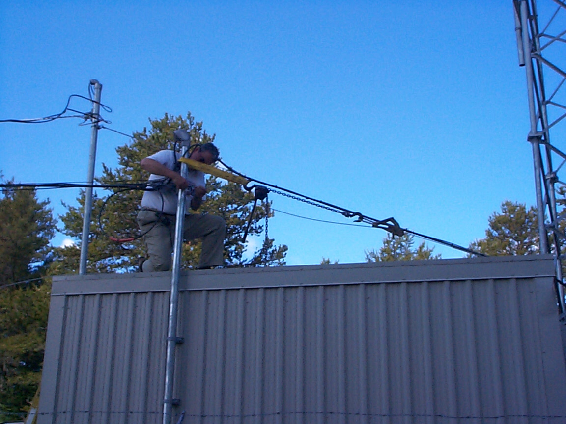 The telco mast was leaning due to the stress of all the fiber runs. A guy wire was installed to secure the mast.