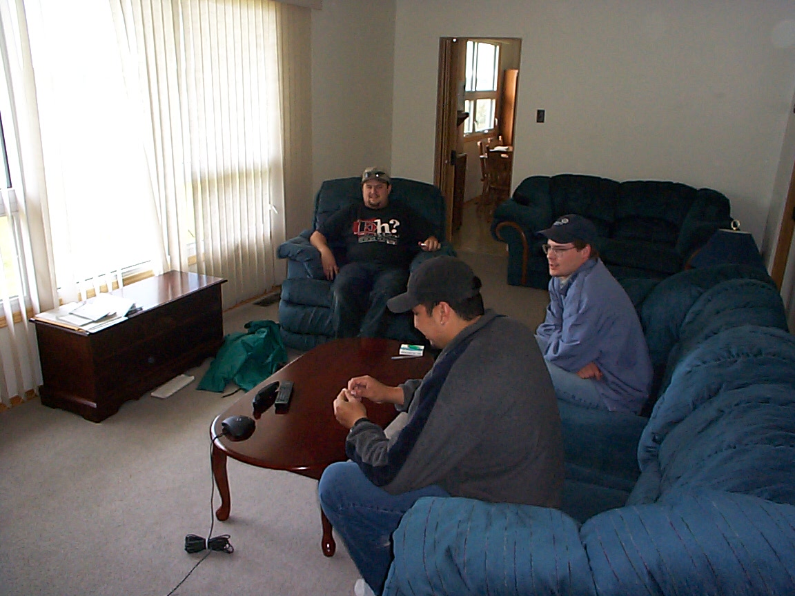 Hugh, Ted (Northern Stores Manager) and Angus at the Northern Stores residence where the video conferencing test via cable modem is taking place.