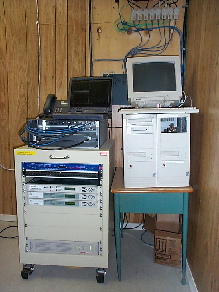 The uBR7223 is now the routing all traffic. The satellite modems are connected via serial cables to the uBR7223.