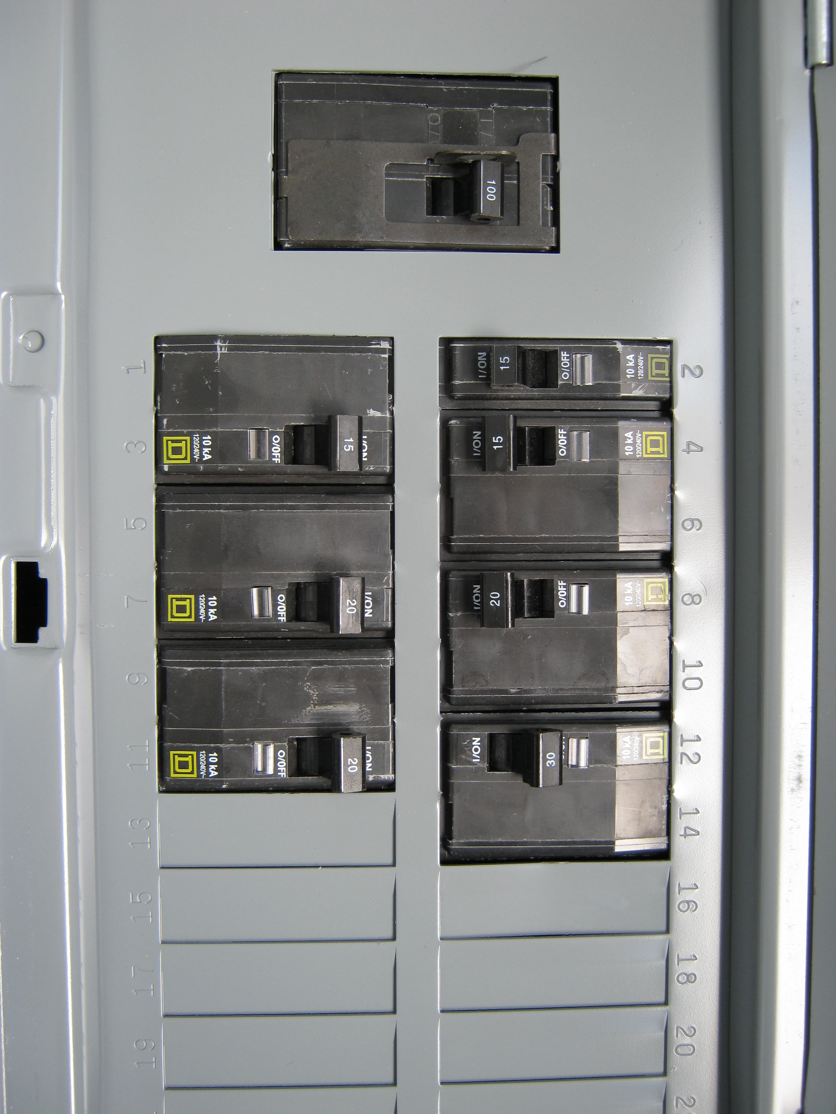 Breaker panel at cell shelter with #12 to power cabinet in the OFF position for repairs. - Breaker panel at cell shelter with #12 to power cabinet in the OFF position for repairs.