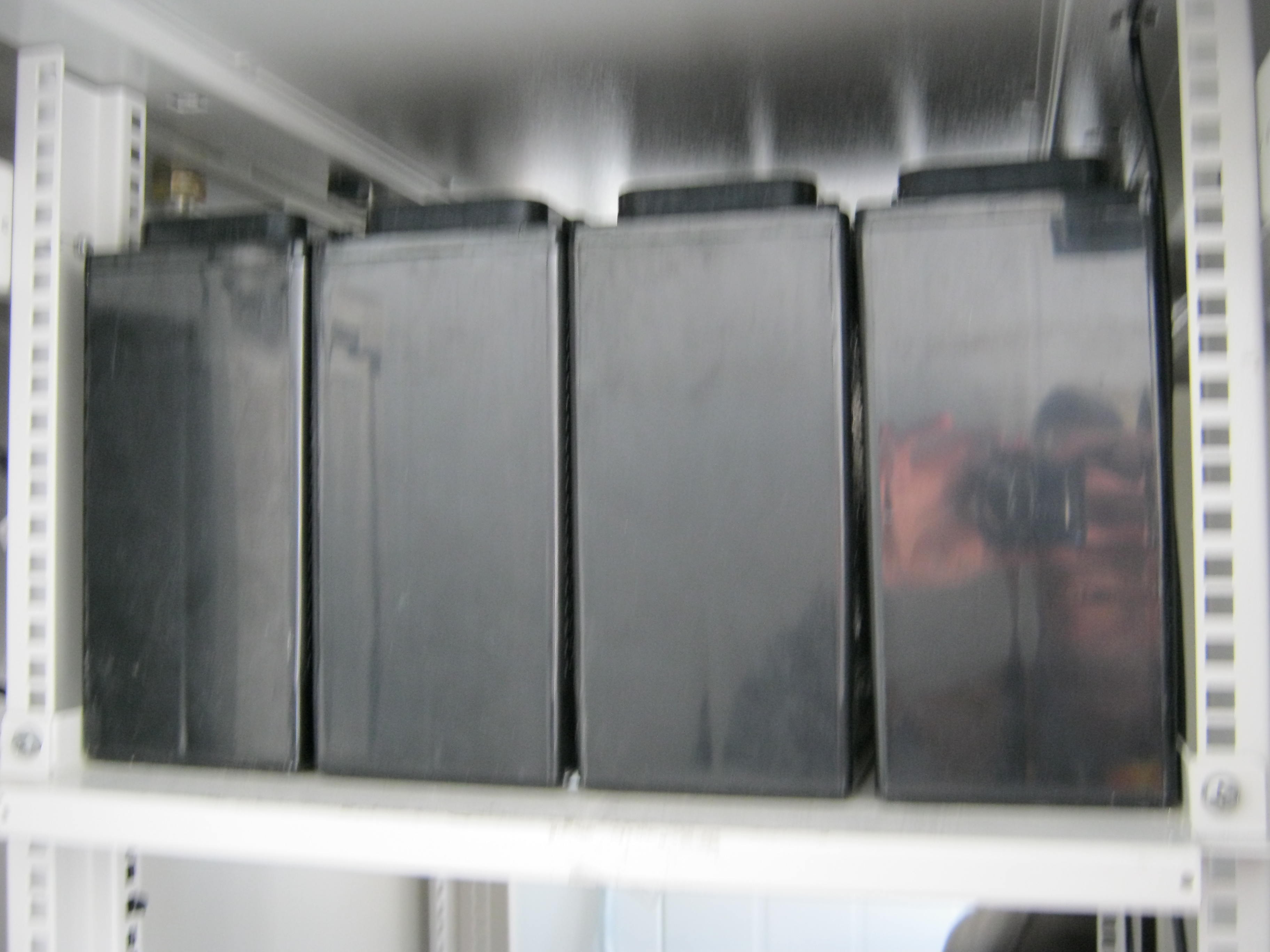 Top shelf in power cabinet. New batteries installed. - Top shelf in power cabinet. New batteries installed.