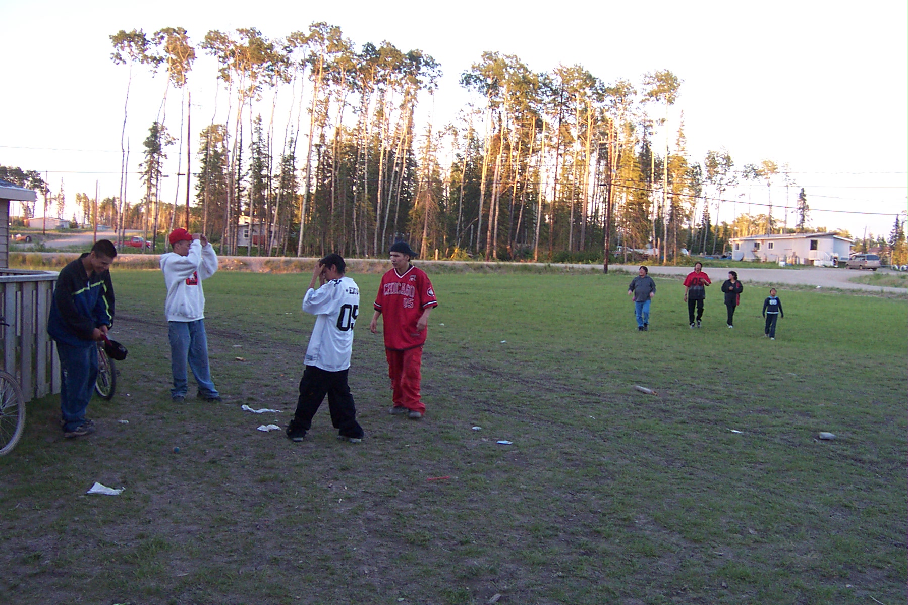 here we have the scene of our youths playing and in the background our Keewaywin chief coming to the festivities