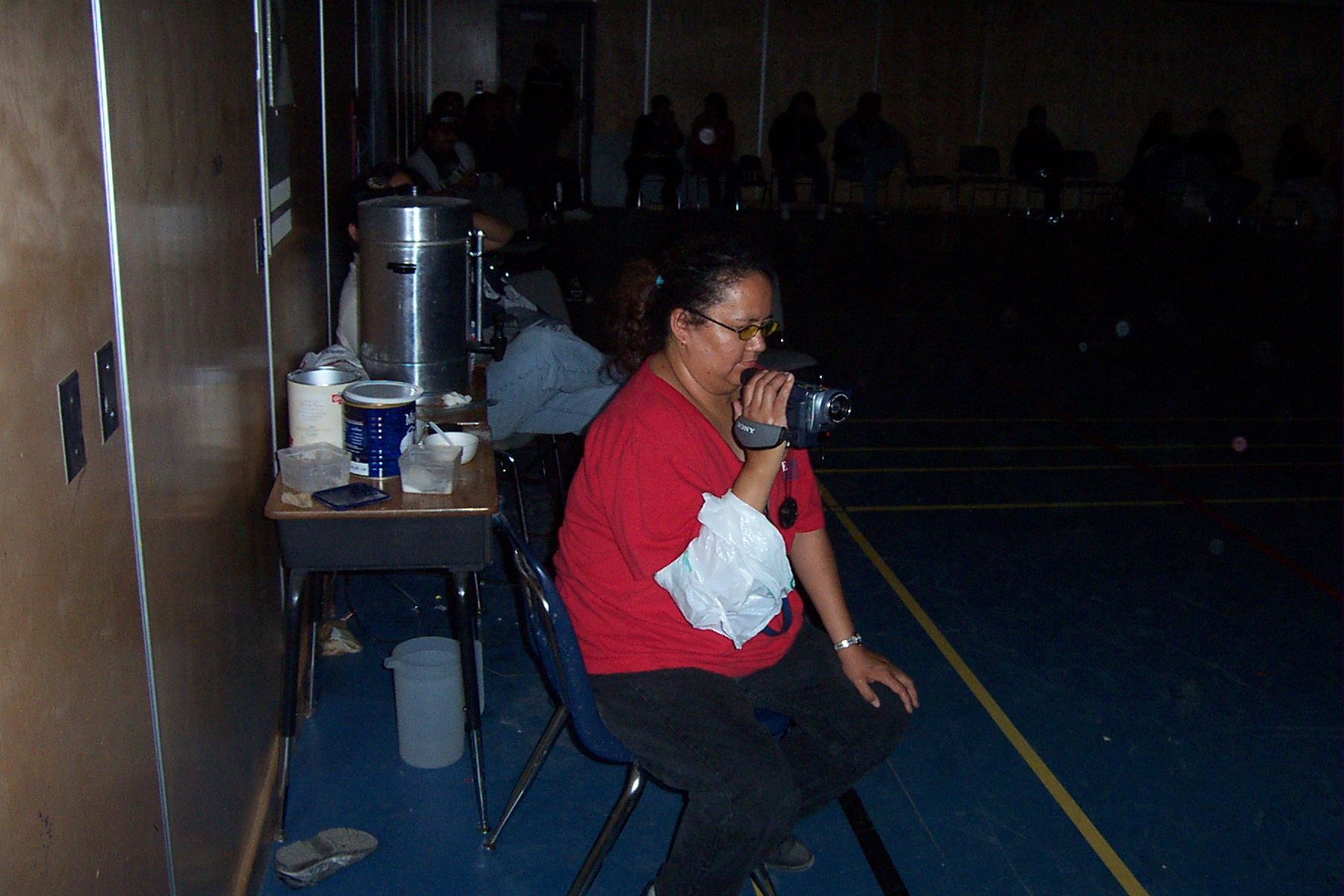 Nancy Kakepetum Keewaywin's Crisis Co-ordinator taking some videos of the communities event.