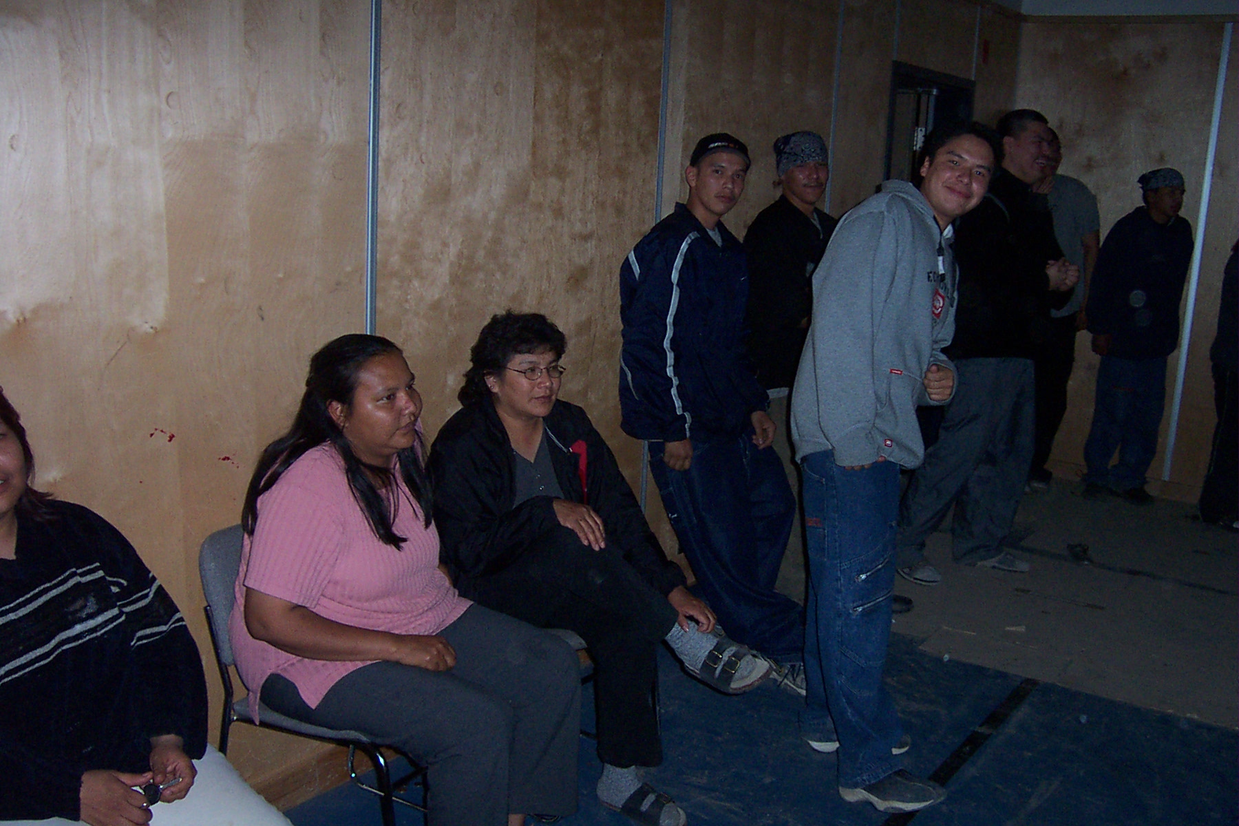 Charlotte peeking out, Angelia Keno and Liz McKay, and some of the Keewaywin studs on the back ground.