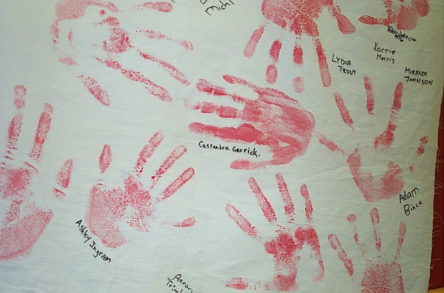 All of the students in the school decorated the gym with their handprints and names decorated on hangings around the gym.