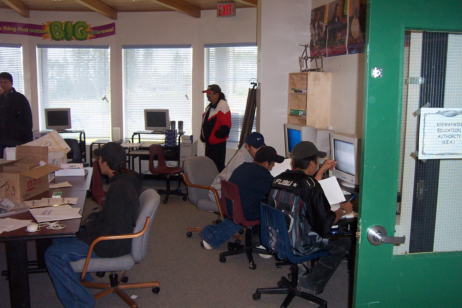 Inside the KiHS classroom during school class, and our ecentre manager looking on.