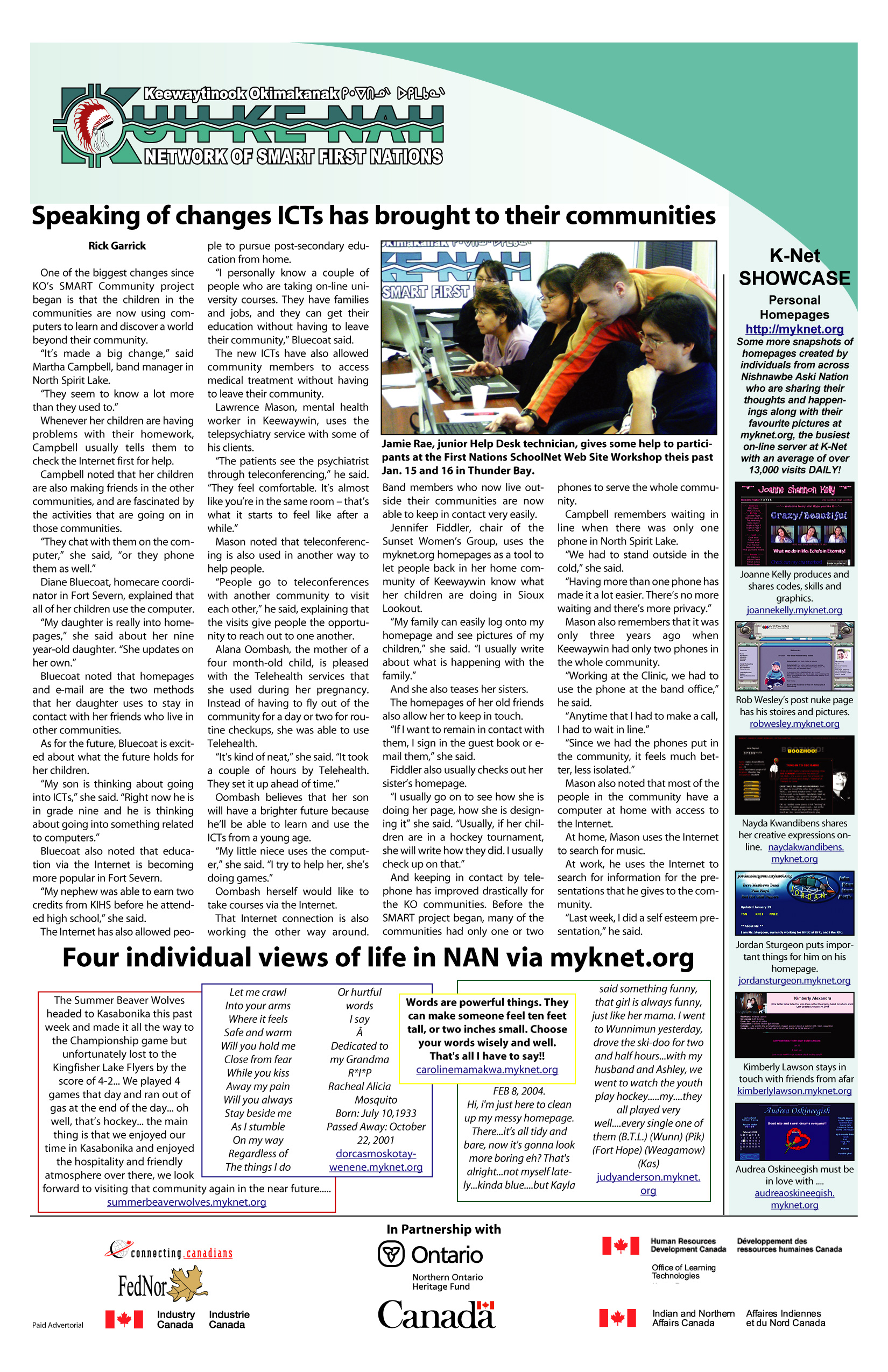 Workshop for KO First Nation Computer Technicians and Multi-Media Producers
