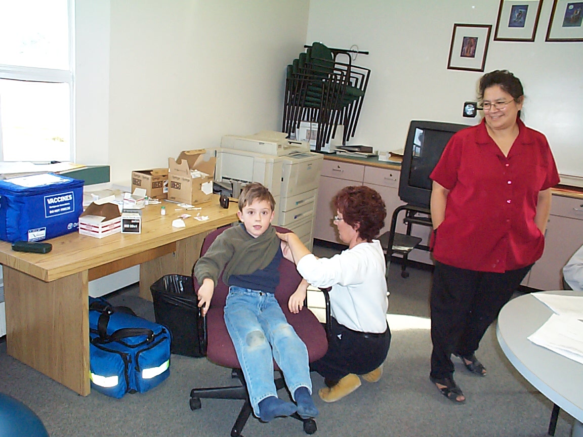 Lucas Potter getting his flu shot.