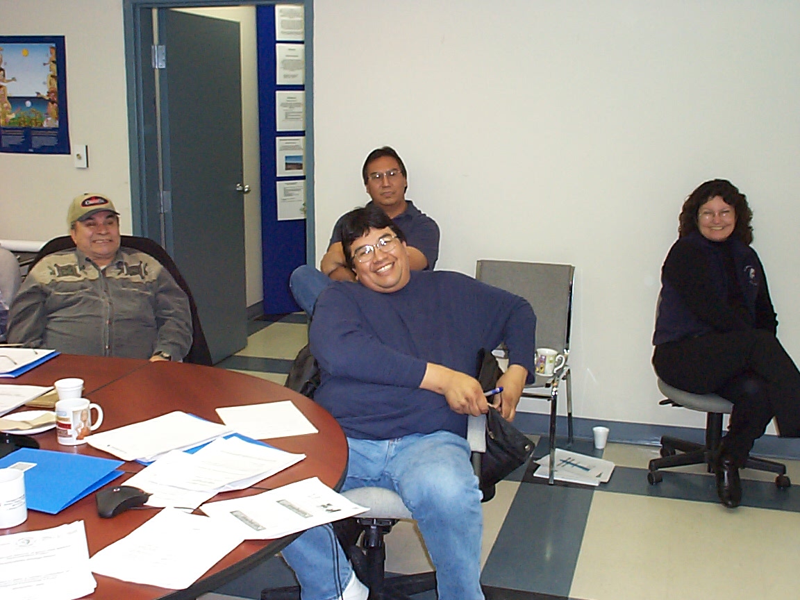 Chief George Kakekaspan described the importance of broadband connectivity with the conference participants (with Peter Campbell