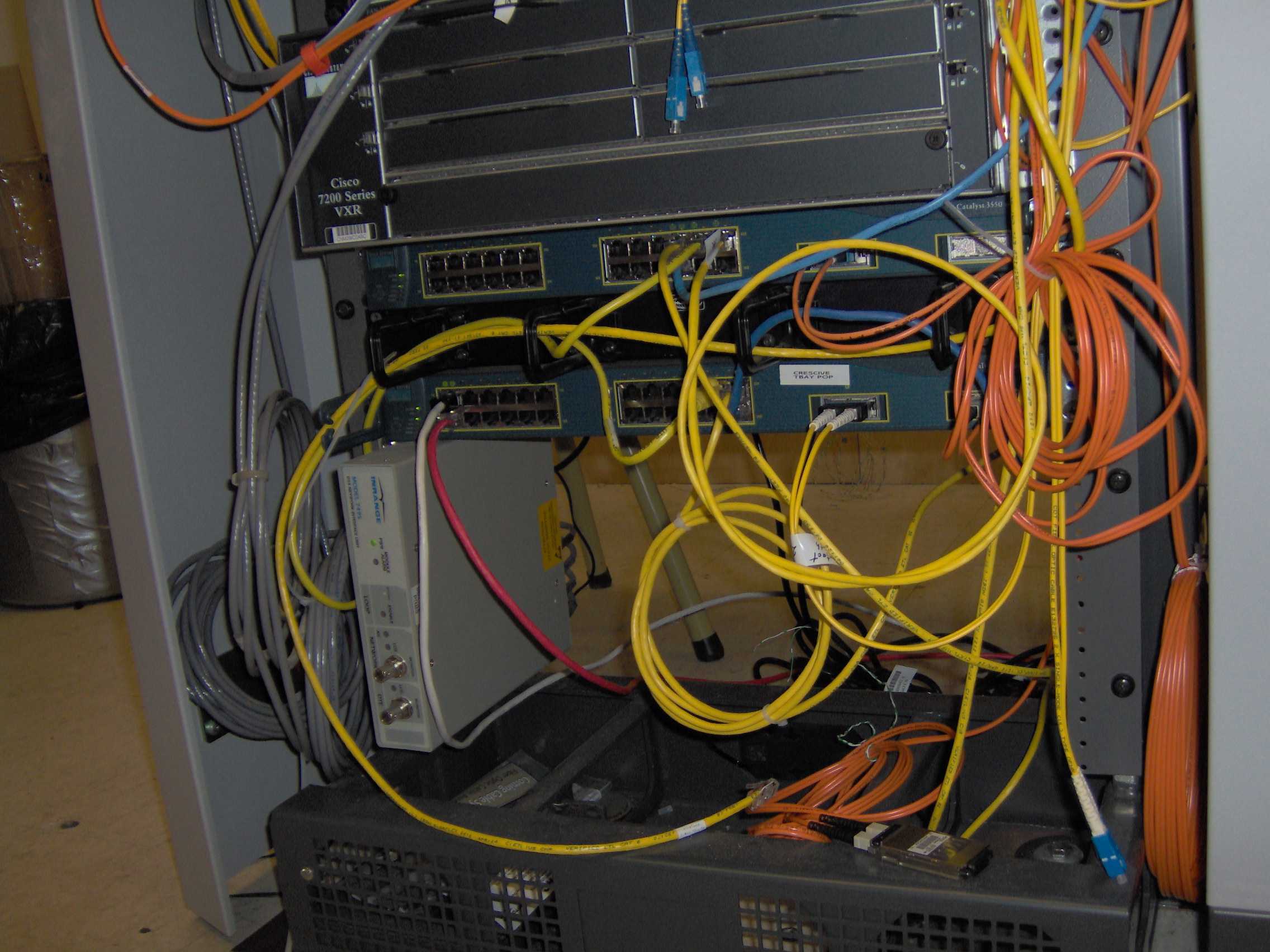 The Crescive switch one floor above the room containing K-Net equipment. A CAT5 cross-connect was installed between this Cresciv