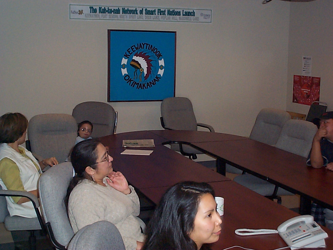 Donna Williams, Sameul Meekis, Gibbet Stevens, myself, and Jeffrey Allan Meekis. Watching Conference in Thunder Bay.